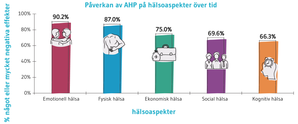 Personer som lever med AHP rapporterade den största försämringen av fysisk, emotionell och ekonomisk hälsa.